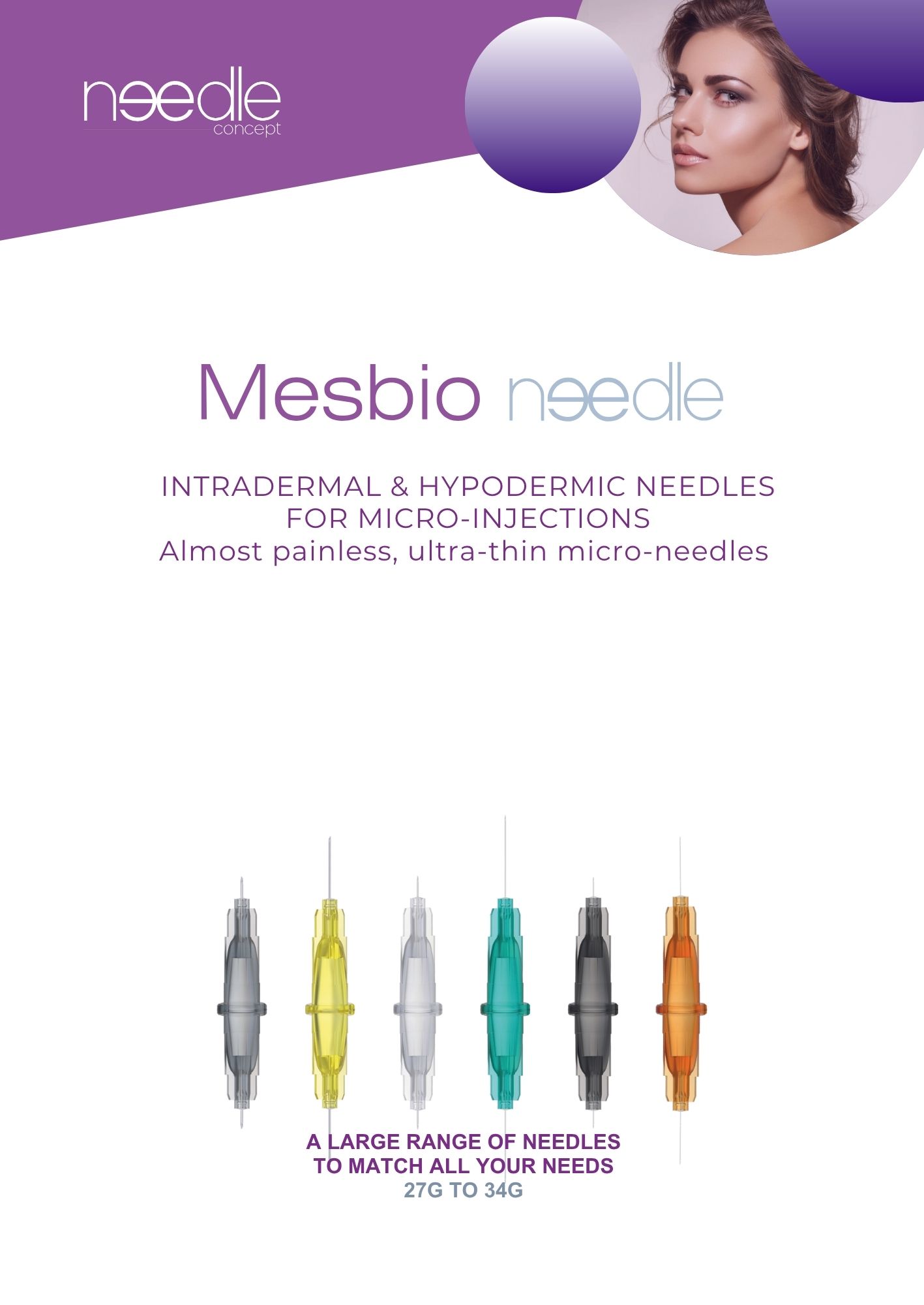 Mesbio® Needle is intended exclusively for licensed professionals trained in intradermal and hypodermic microinjection techniques. These needles may be used in practices performing mesotherapy, botulinum toxin delivery, and other controlled microinjection procedures. Practitioners must follow all regional regulations, industry guidelines and sanitation protocols. These products are not intended for consumer use, self-administration or untrained application.