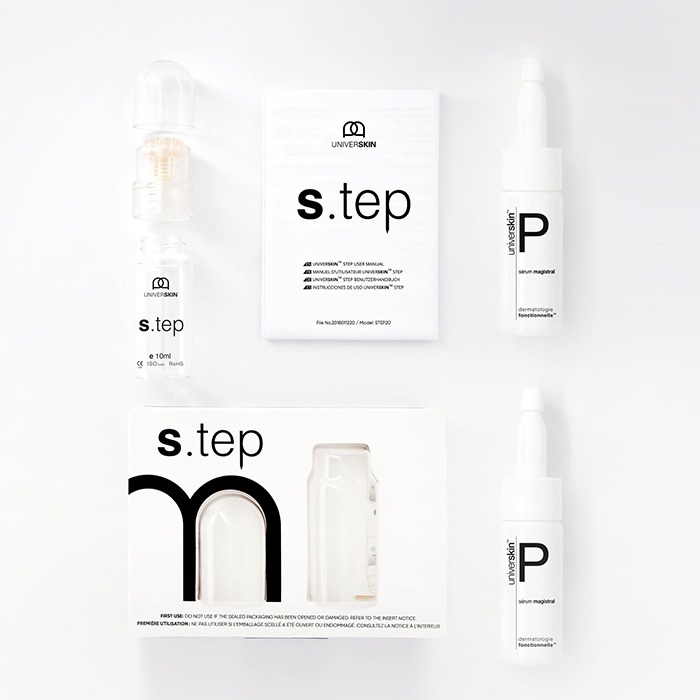 The Universkin S.TEP 0.5MM is a professional microneedling device for gentle, effective skin renewal.
